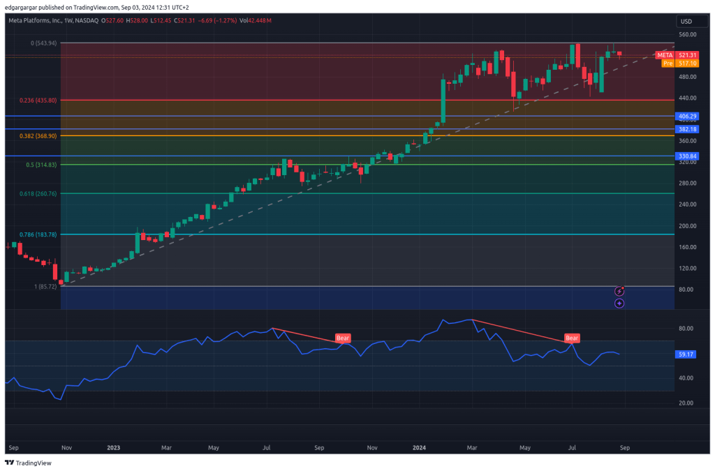 The biggest stocks in the market, from the technology sector, tops on July 2024. Now they are showing some concerning data. The weak RSI and Fibonacci retracement levels perfectly match previous support and resistance levels. There are also other concerning factors.